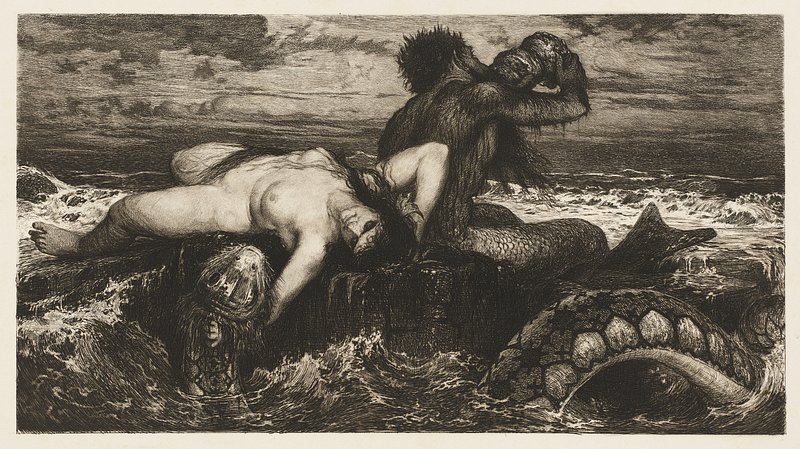 Nereid and Triton with Snake (1873) by After Arnold Böcklin https://www.rawpixel.com/image/9785604/nereid-and-triton-with-snake-1873-after-arnold-bocklinFree Image from public domain license