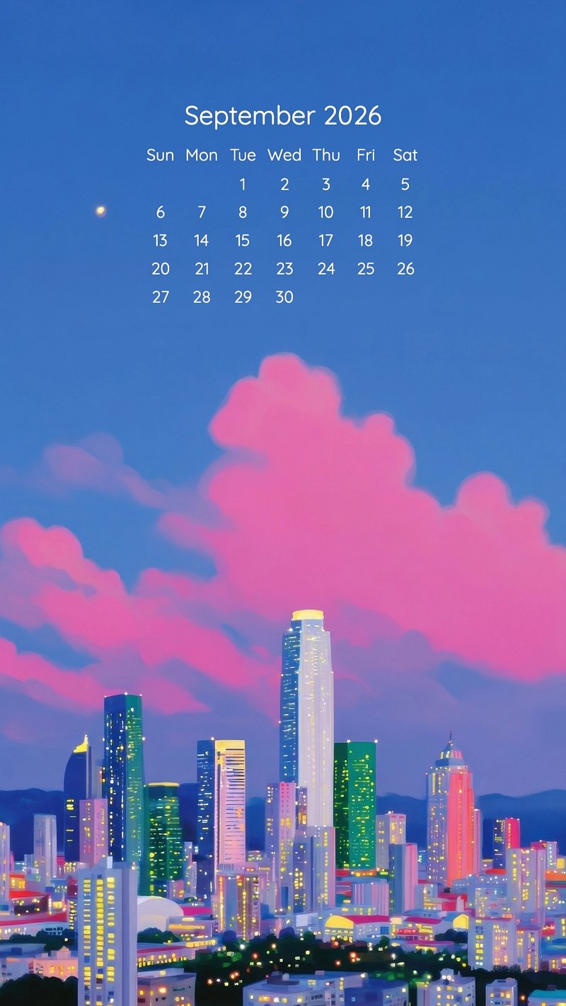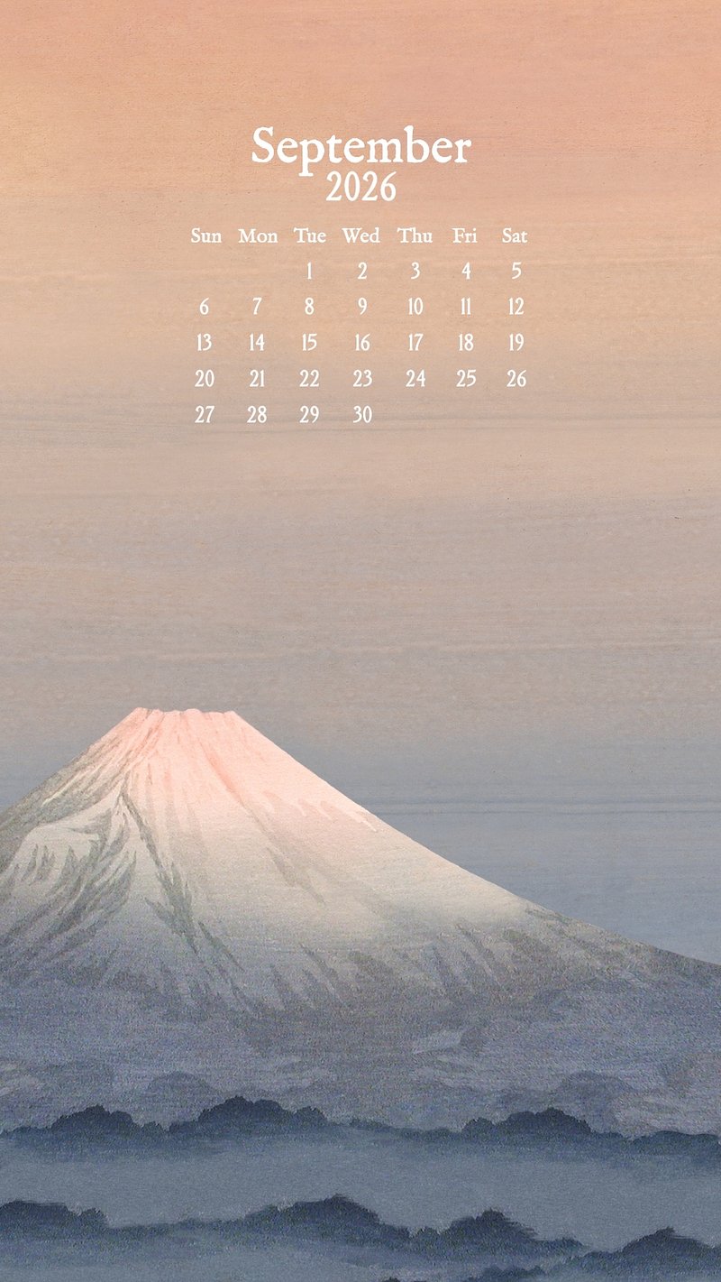 September 2026 calendar mobile wallpaper, original art illustration by Hiroaki Takahashi https://www.rawpixel.com/image/24700651/image-wallpaper-iphone-mobileView license