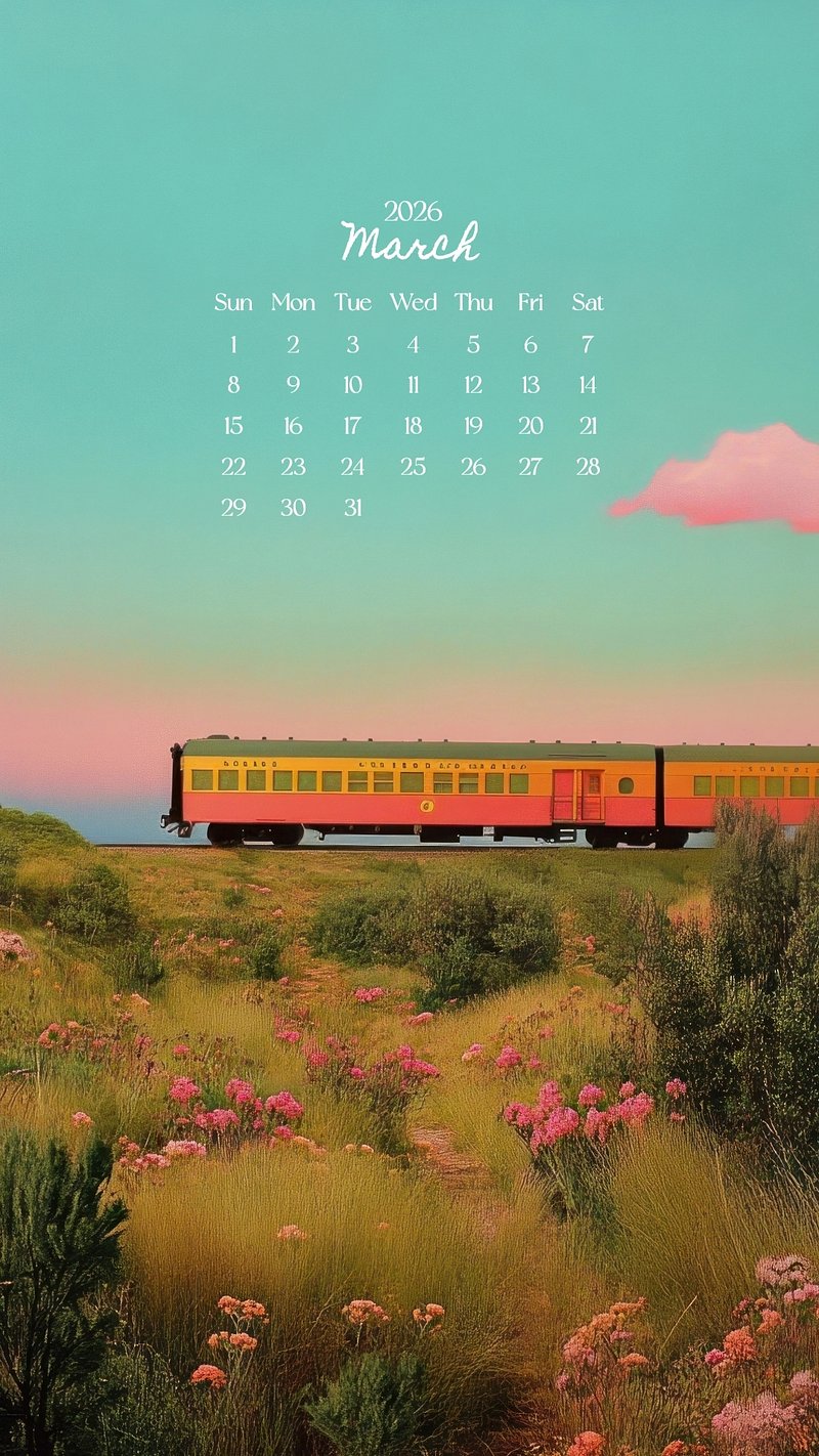 Vintage train scenic March 2026 calendar template design https://www.rawpixel.com/image/24540979/vintage-train-scenic-march-2026-calendar-template-designView license
