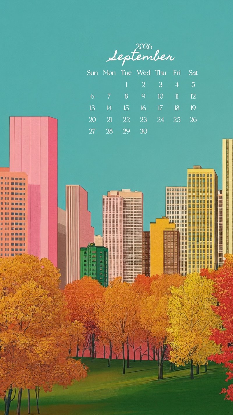 Colorful cityscape with autumn trees September 2026 calendar template design https://www.rawpixel.com/image/24540985/colorful-cityscape-with-autumn-trees-september-2026-calendar-template-designView license