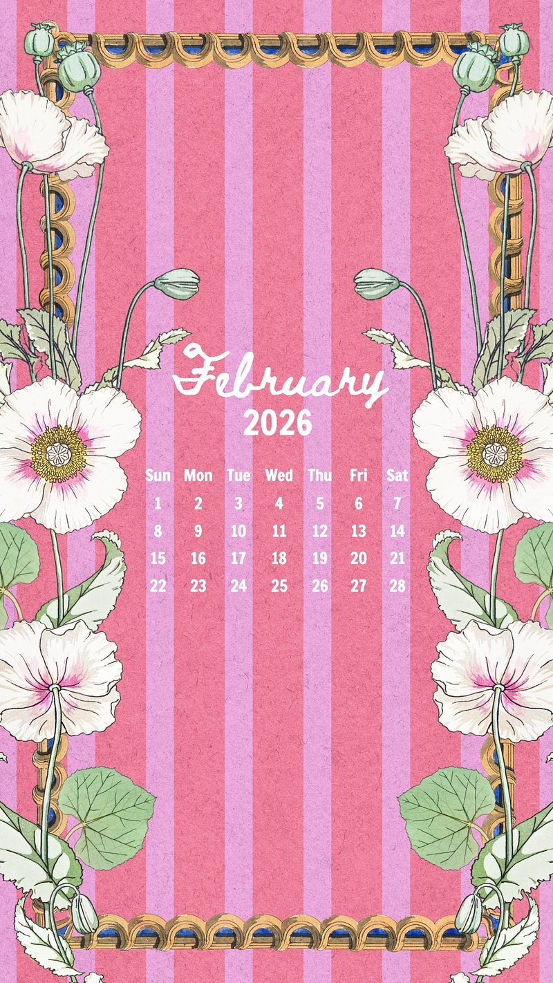 Vintage floral February 2026 calendar mobile wallpaper https://www.rawpixel.com/image/24701969/vintage-floral-february-2026-calendar-mobile-wallpaperView license