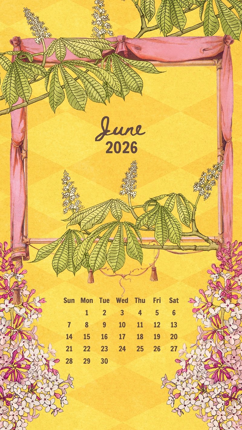 Vintage floral June 2026 calendar mobile wallpaper https://www.rawpixel.com/image/24701973/vintage-floral-june-2026-calendar-mobile-wallpaperView license