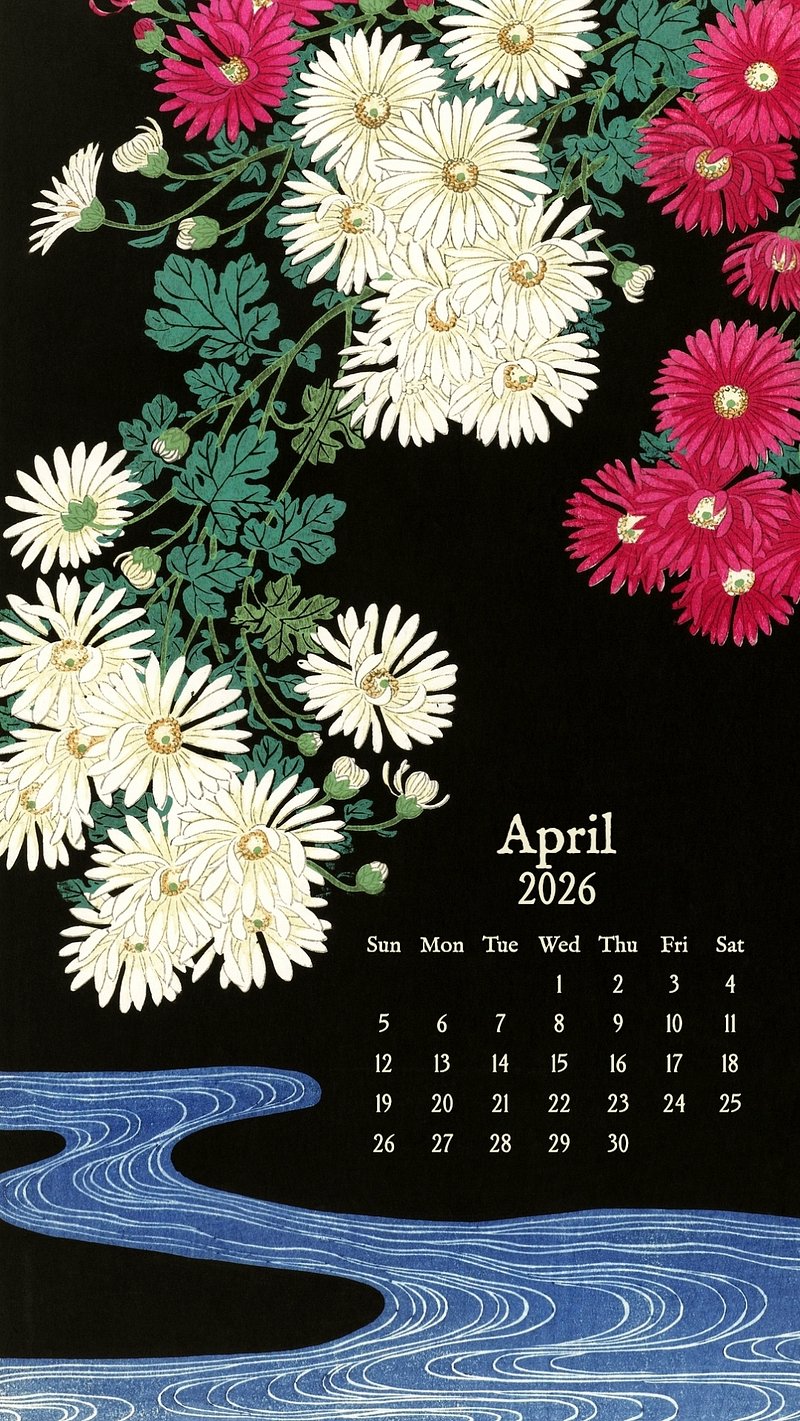 April 2026 calendar mobile wallpaper, original art illustration by Ohara Koson https://www.rawpixel.com/image/24700649/april-2026-calendar-mobile-wallpaper-original-art-illustration-ohara-kosonView license
