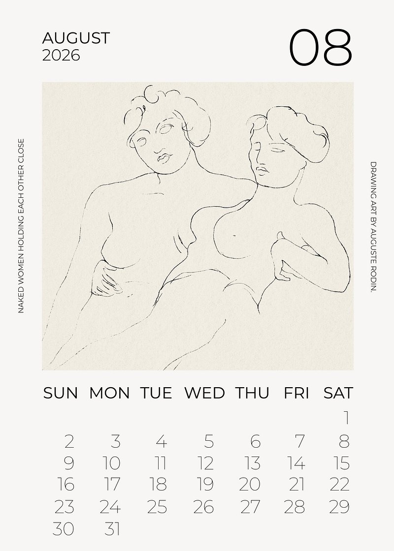 2026 August art calendar, original artwork by Auguste Rodin https://www.rawpixel.com/image/24739540/2026-august-art-calendar-original-artwork-auguste-rodinView license