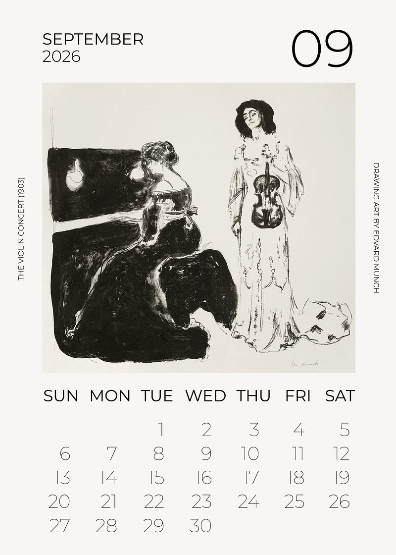 2026 September art calendar, original artwork by Edvard Munch https://www.rawpixel.com/image/24739542/2026-september-art-calendar-original-artwork-edvard-munchView license