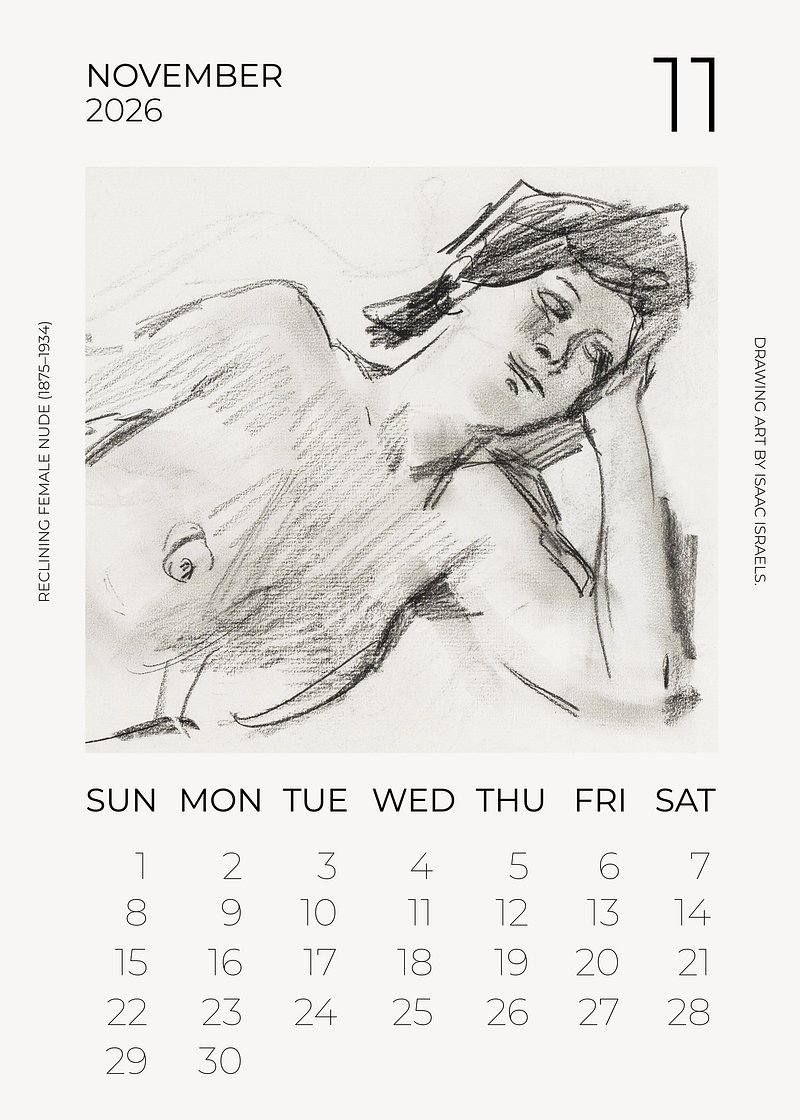 2026 November art calendar, original artwork by Isaac Israels https://www.rawpixel.com/image/24739544/2026-november-art-calendar-original-artwork-isaac-israelsView license