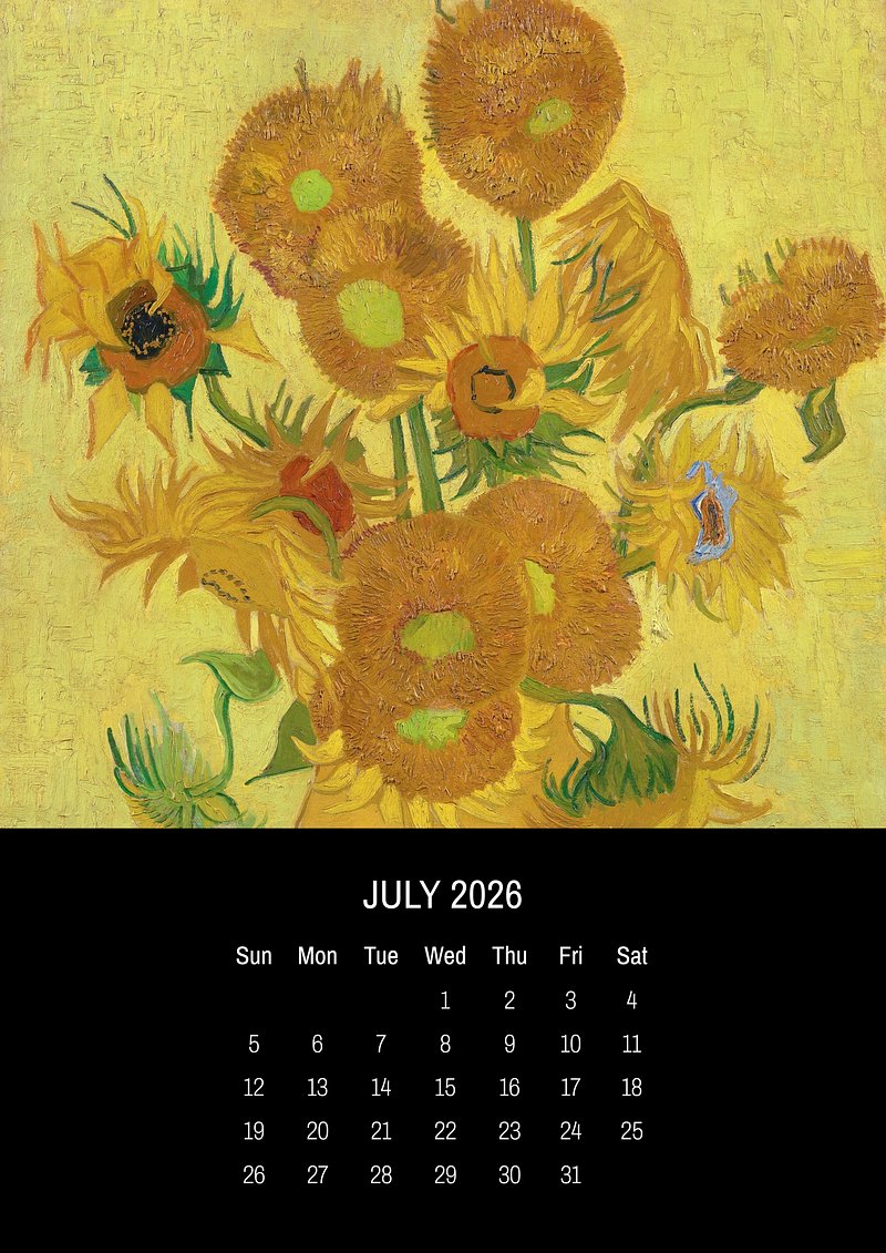 2026 July art calendar, original artwork by Vincent van Gogh https://www.rawpixel.com/image/24704668/2026-july-art-calendar-original-artwork-vincent-van-goghView license