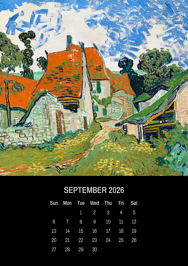2026 September art calendar, original artwork by Vincent van Gogh https://www.rawpixel.com/image/24704670/2026-september-art-calendar-original-artwork-vincent-van-goghView license