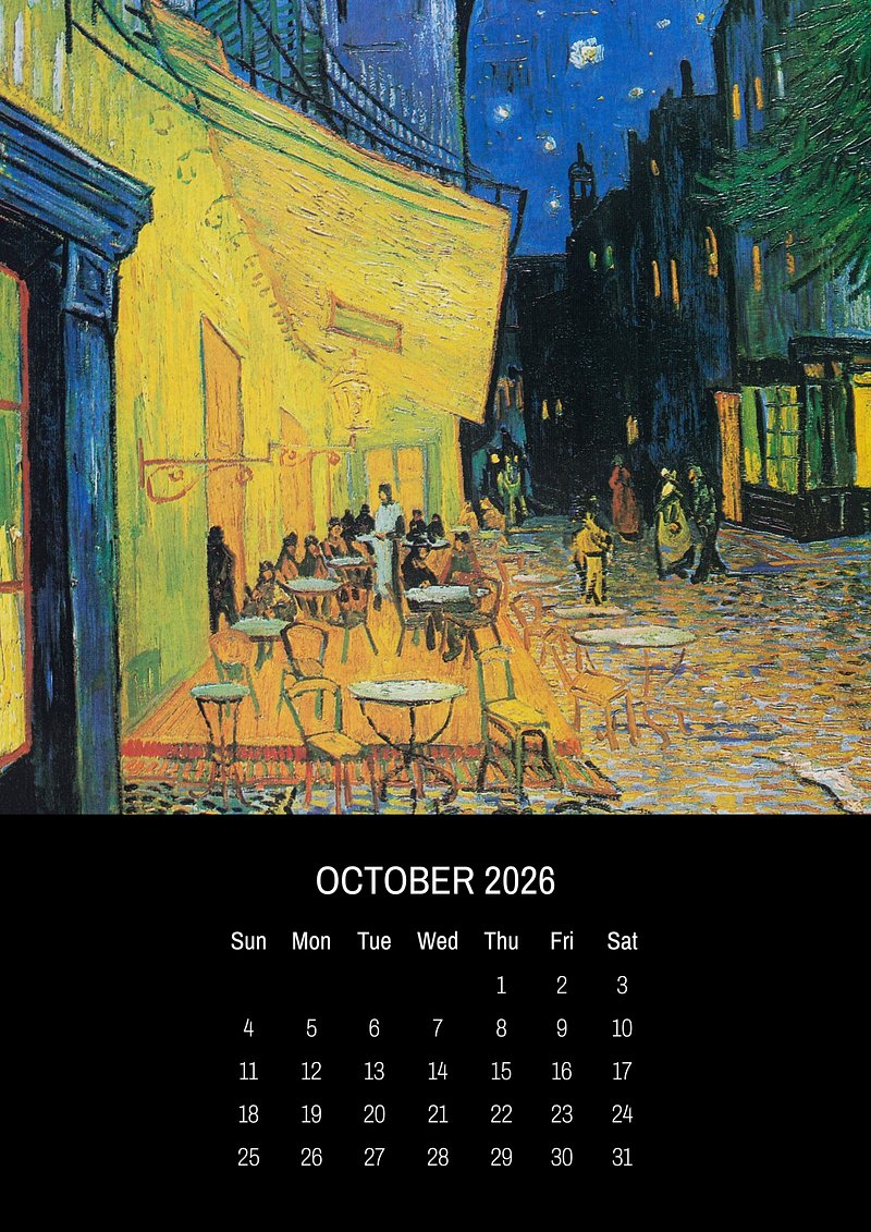 2026 October art calendar, original artwork by Vincent van Gogh https://www.rawpixel.com/image/24704677/2026-october-art-calendar-original-artwork-vincent-van-goghView license