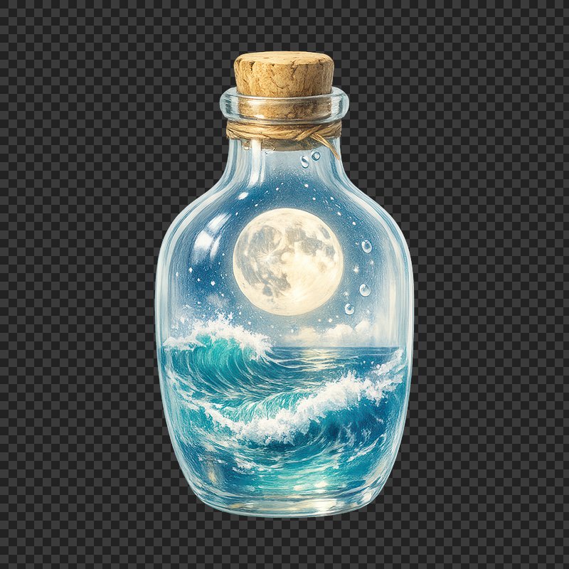 PNG Ocean moonlight captured in bottle. https://www.rawpixel.com/image/25248019/png-ocean-moonlight-captured-bottleView license