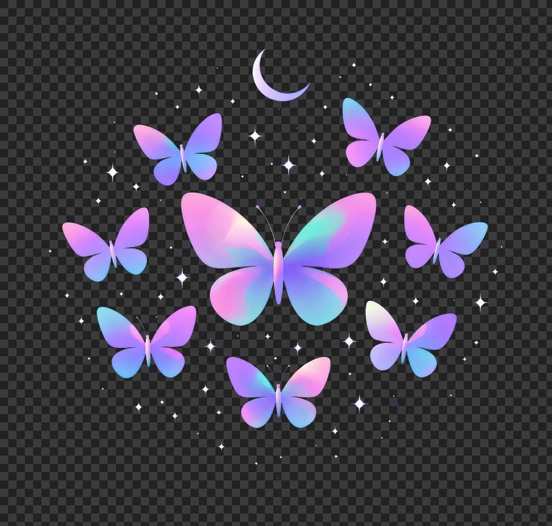 PNG Colorful butterflies under moonlight. https://www.rawpixel.com/image/25890894/png-colorful-butterflies-under-moonlightView license
