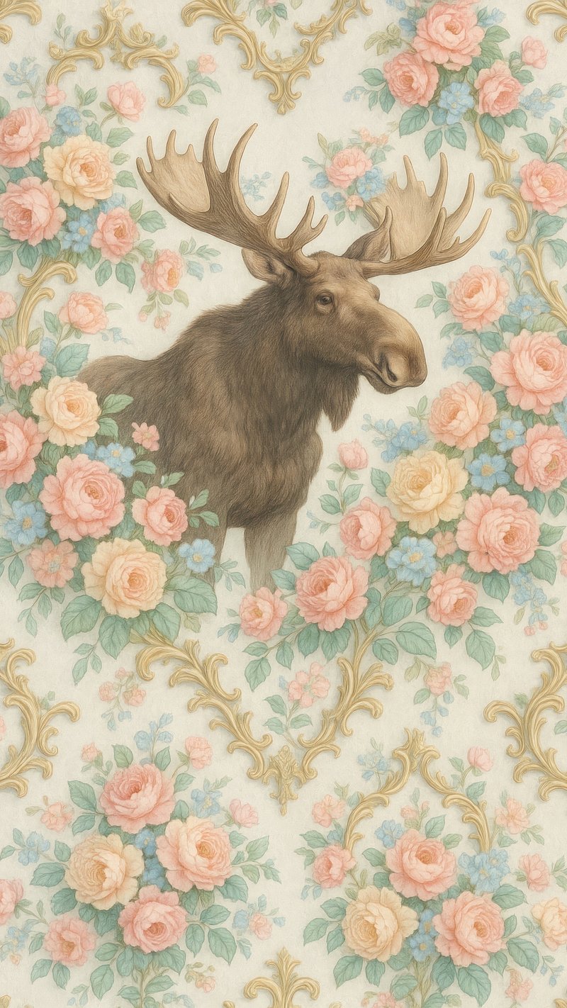 Moose surrounded by floral elegance mobile wallpaper https://www.rawpixel.com/image/20139593/moose-surrounded-floral-elegance-mobile-wallpaperView license