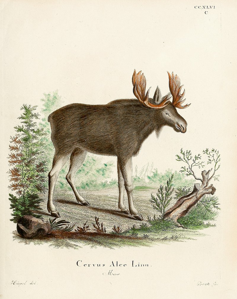 Moose from Die Säugthiere in Abbildungen nach der Natur (1778-1855) by Georg August Goldfuss, Johann Andreas Wagener and… https://www.rawpixel.com/image/16823877/image-animal-deer-artFree Image from public domain license