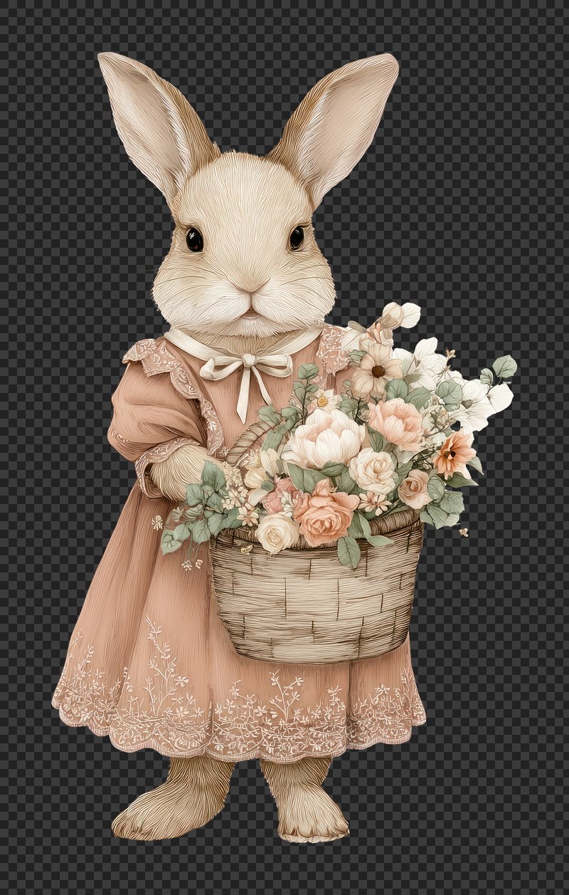 PNG Charming rabbit with floral basket. https://www.rawpixel.com/image/24918890/png-charming-rabbit-with-floral-basketView license