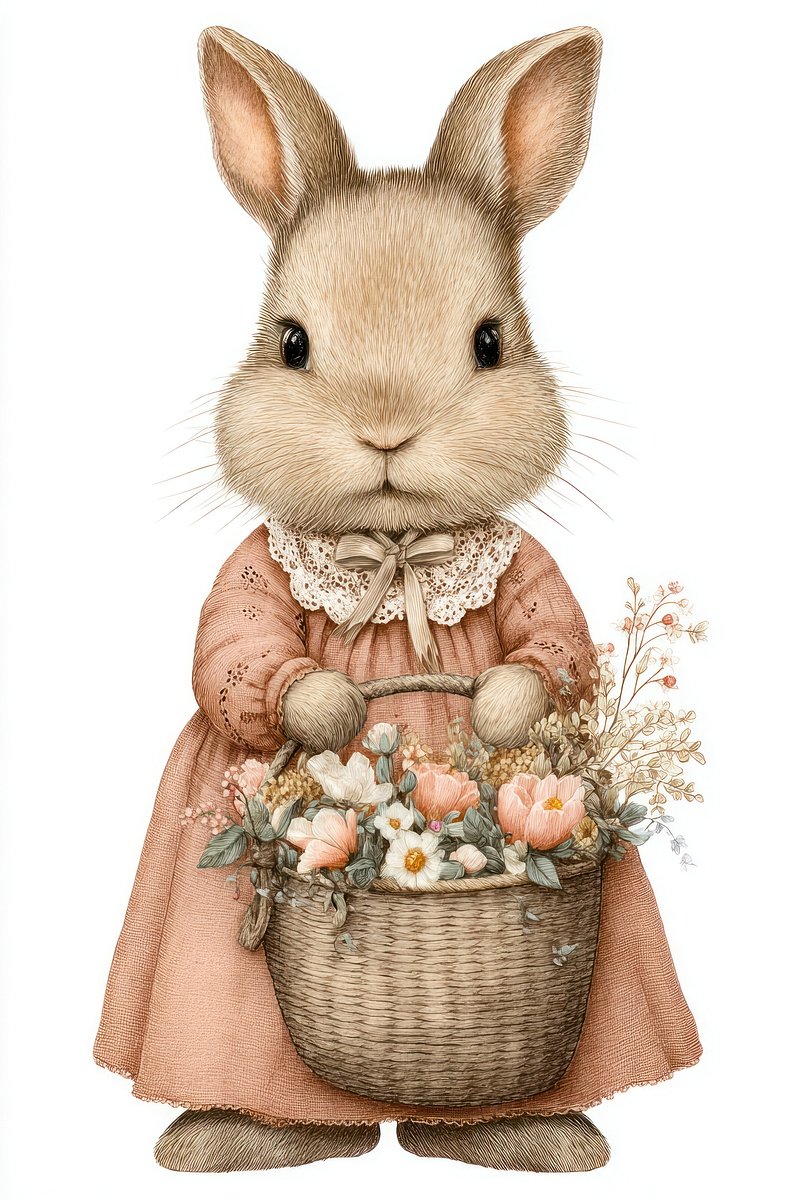 Charming rabbit with floral basket. https://www.rawpixel.com/image/24890050/charming-rabbit-with-floral-basketView license