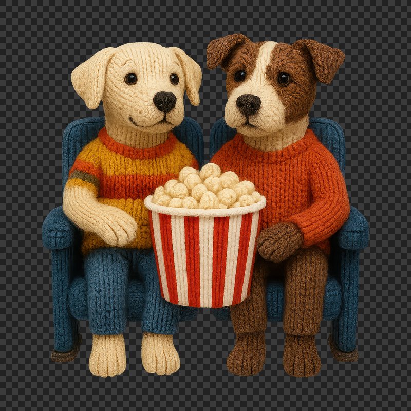 PNG Knitted dogs sharing popcorn. https://www.rawpixel.com/image/24445277/png-knitted-dogs-sharing-popcornView license