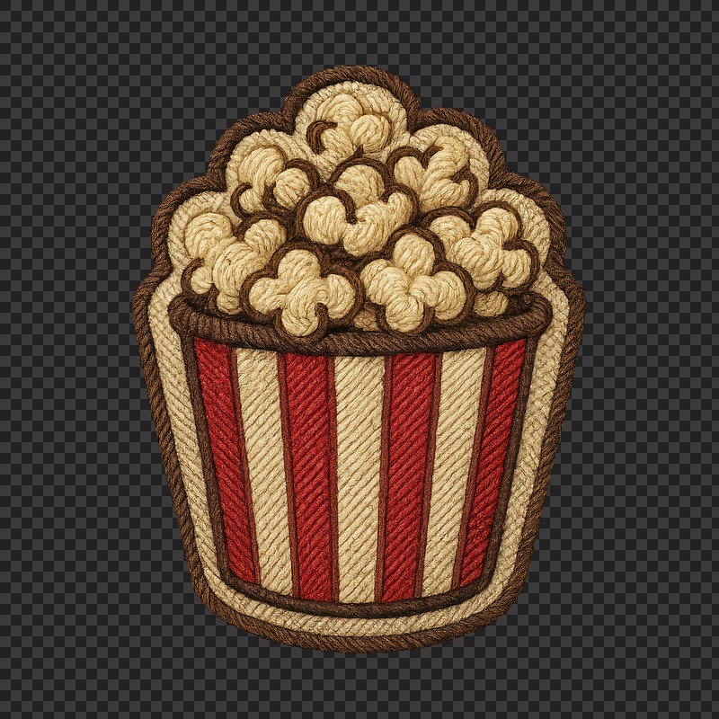 PNG Embroidered popcorn bucket illustration. https://www.rawpixel.com/image/24372570/png-embroidered-popcorn-bucket-illustrationView license