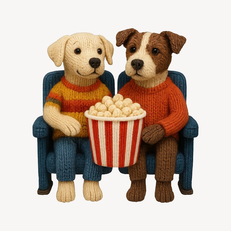 Knitted dogs sharing popcorn. https://www.rawpixel.com/image/24535079/knitted-dogs-sharing-popcornView license