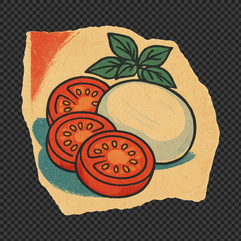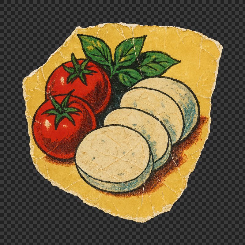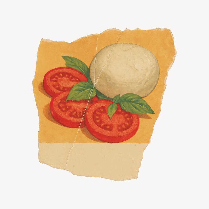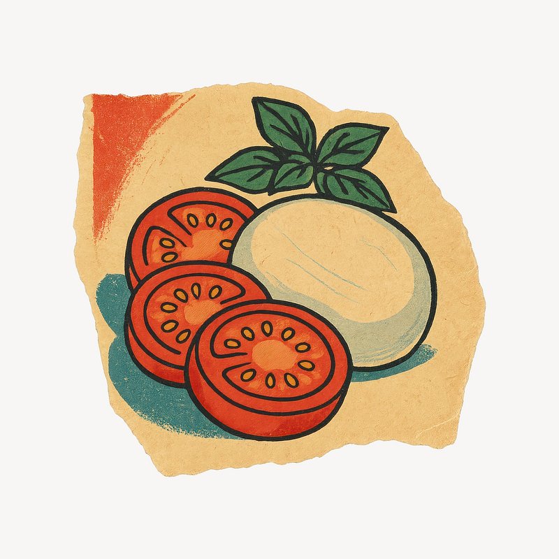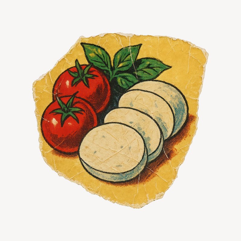 Vintage illustration of caprese salad. https://www.rawpixel.com/image/24566619/vintage-illustration-caprese-saladView license