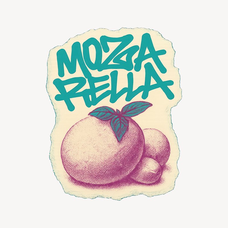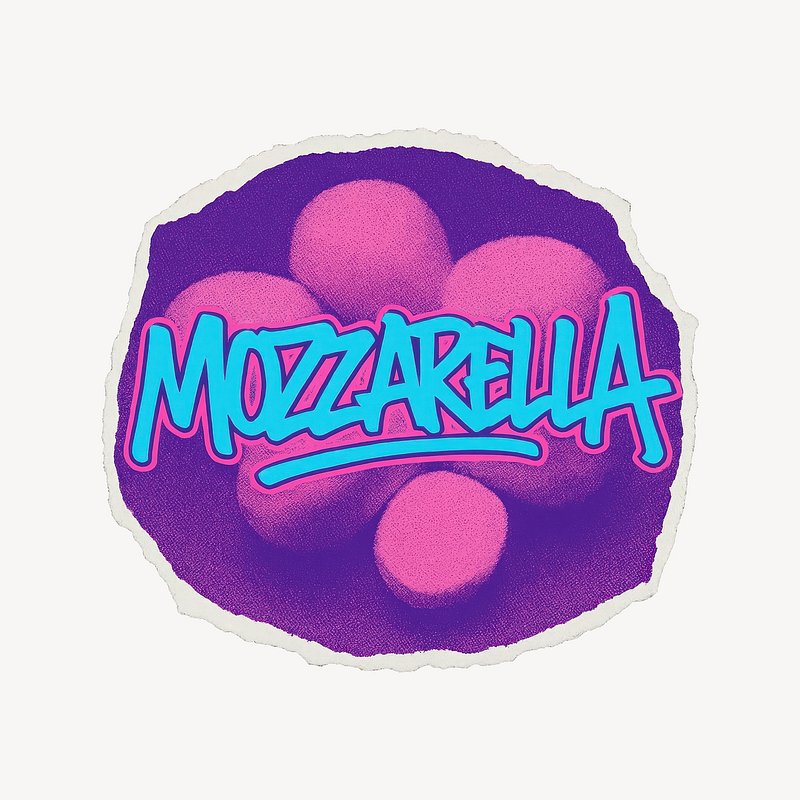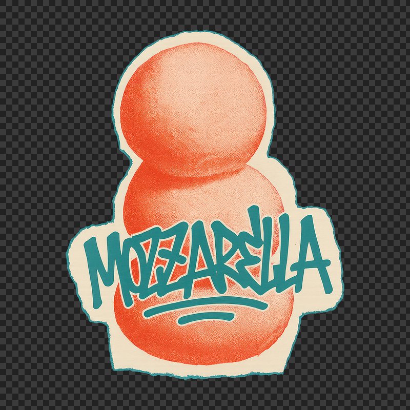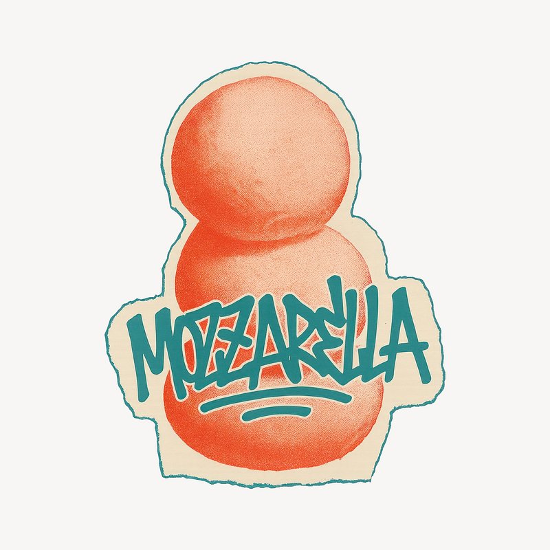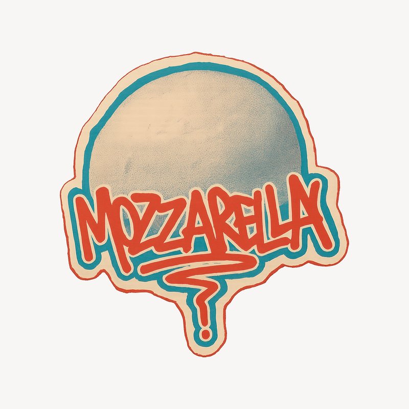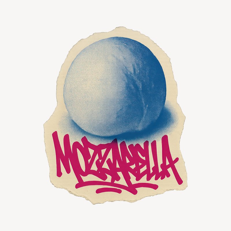 Bold mozzarella graffiti design. https://www.rawpixel.com/image/24650090/bold-mozzarella-graffiti-designView license