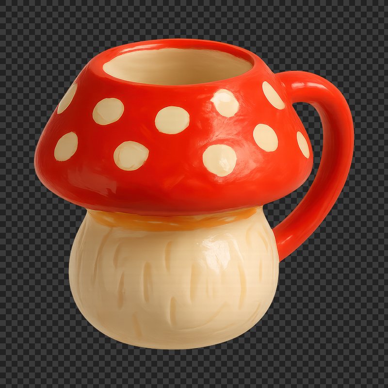 PNG Whimsical mushroom-shaped ceramic mug. https://www.rawpixel.com/image/24728806/png-whimsical-mushroom-shaped-ceramic-mugView license