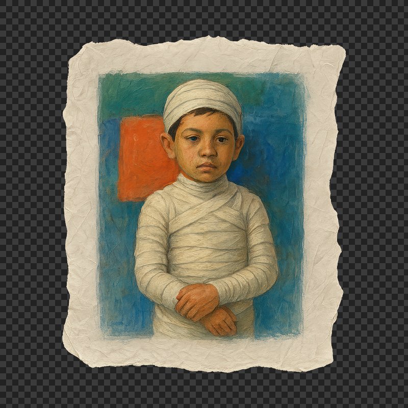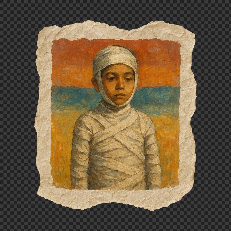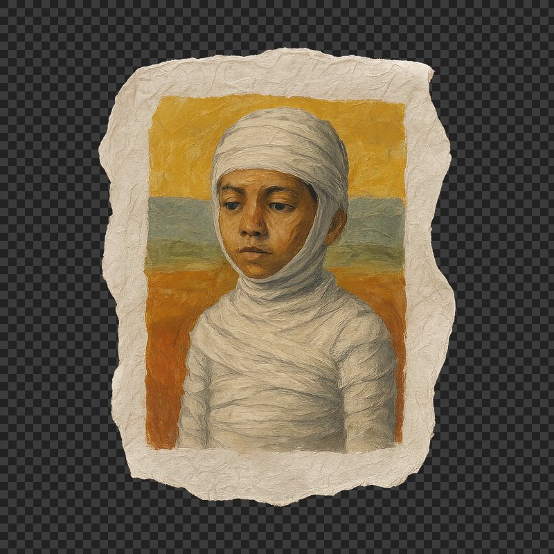 PNG Surreal portrait of bandaged child https://www.rawpixel.com/image/24121892/png-surreal-portrait-bandaged-childView license