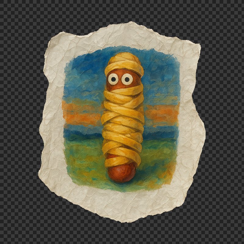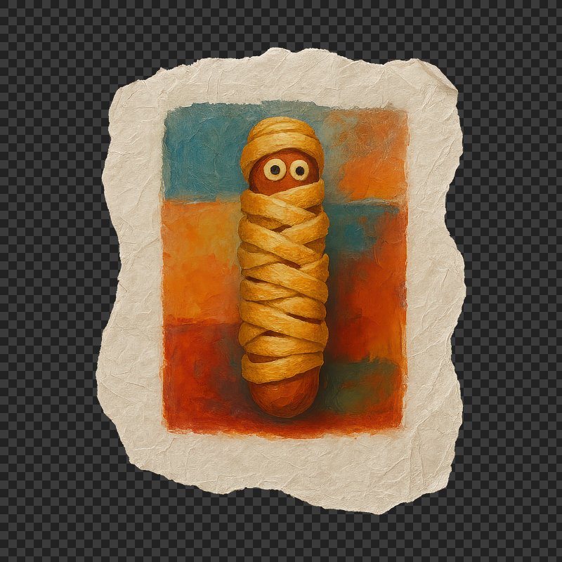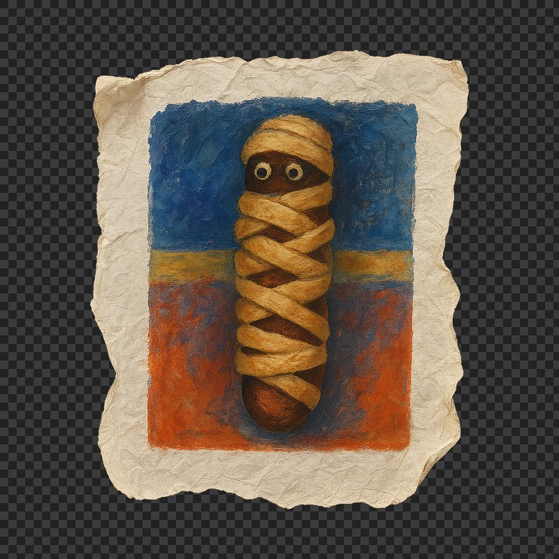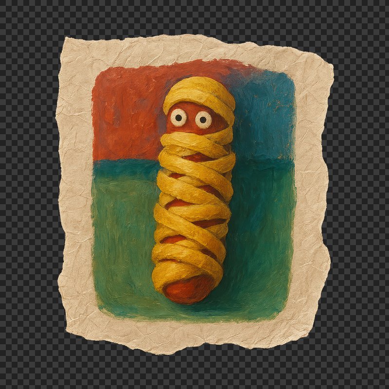PNG Whimsical mummy sausage illustration. https://www.rawpixel.com/image/24117014/png-whimsical-mummy-sausage-illustrationView license