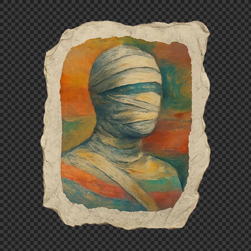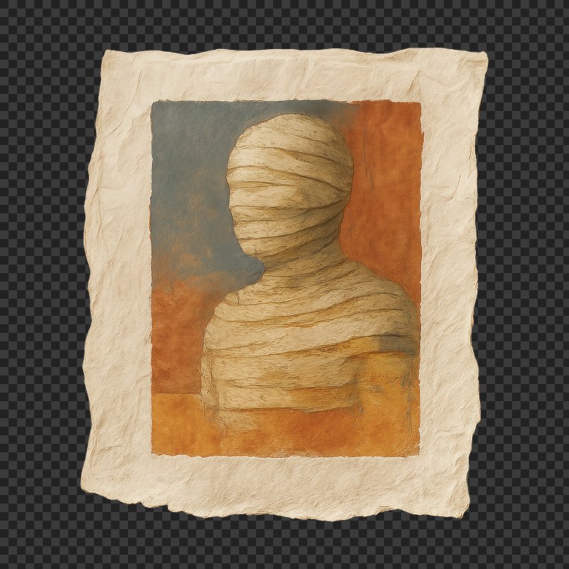 PNG Portrait wrapped in textured bandages. https://www.rawpixel.com/image/24121887/png-portrait-wrapped-textured-bandagesView license