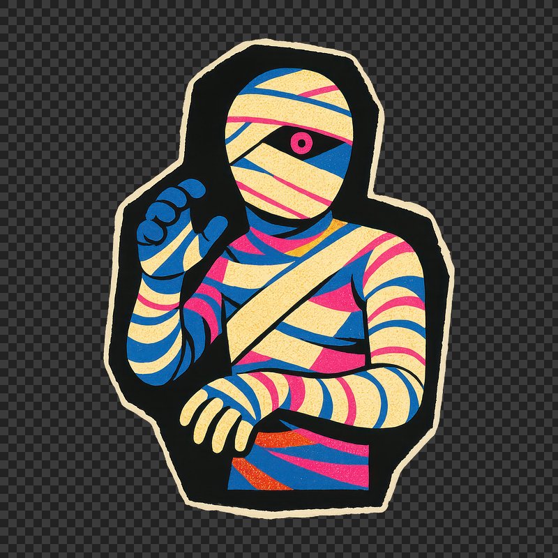 PNG Colorful abstract mummy illustration https://www.rawpixel.com/image/24541595/png-colorful-abstract-mummy-illustrationView license