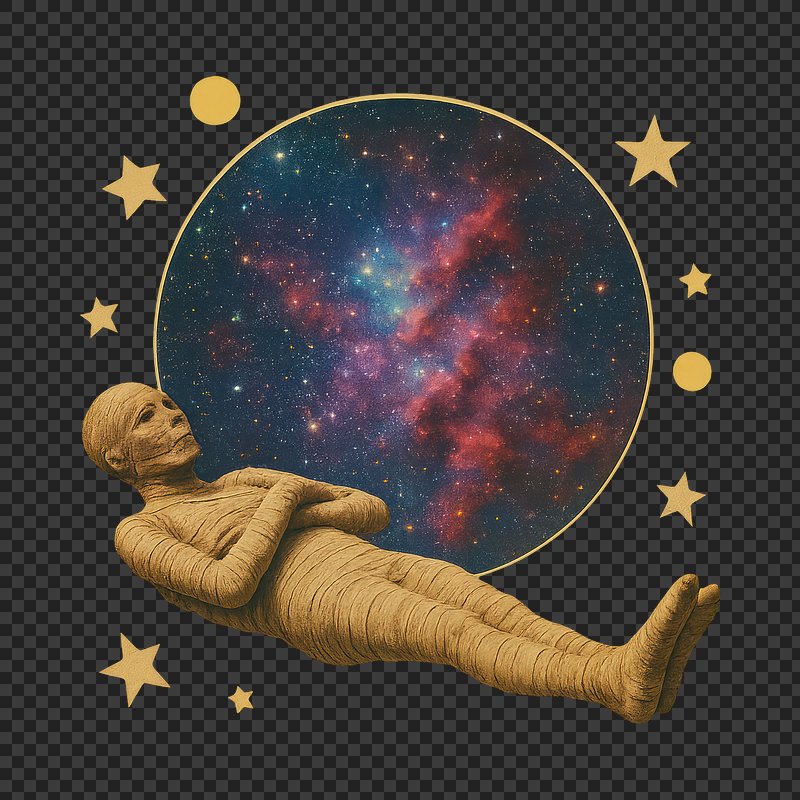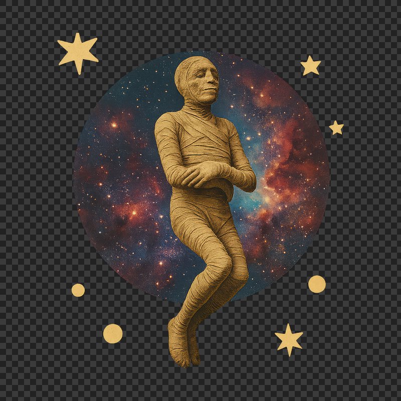 PNG Mummy floating cosmic collage art. https://www.rawpixel.com/image/24266965/png-mummy-floating-cosmic-collage-artView license