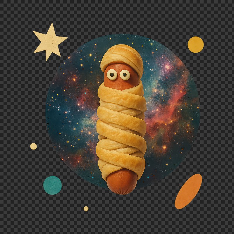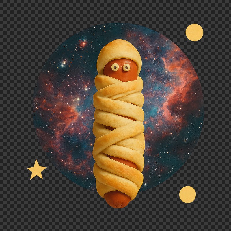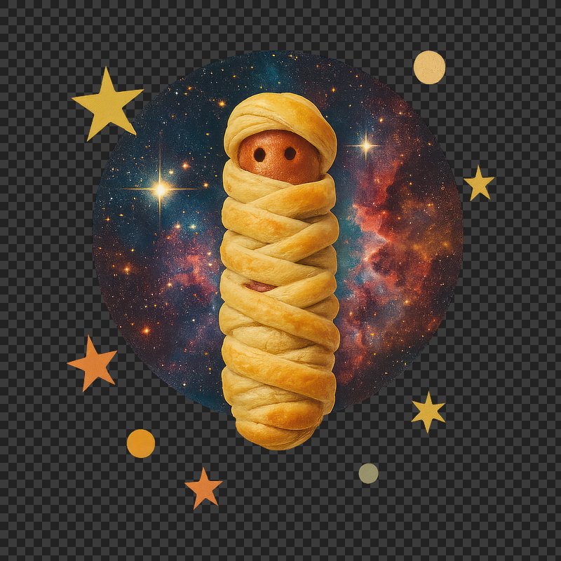 PNG Cosmic pastry-wrapped sausage surprise. https://www.rawpixel.com/image/24268135/png-cosmic-pastry-wrapped-sausage-surpriseView license