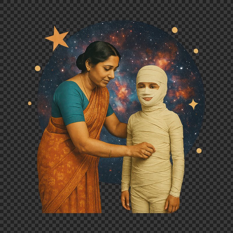 PNG Mother wraps child mummy costume. https://www.rawpixel.com/image/24053590/png-mother-wraps-child-mummy-costumeView license