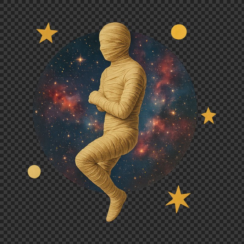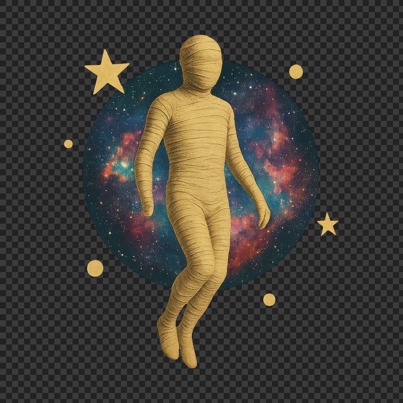 PNG Mummy floating cosmic space art. https://www.rawpixel.com/image/24266800/png-mummy-floating-cosmic-space-artView license
