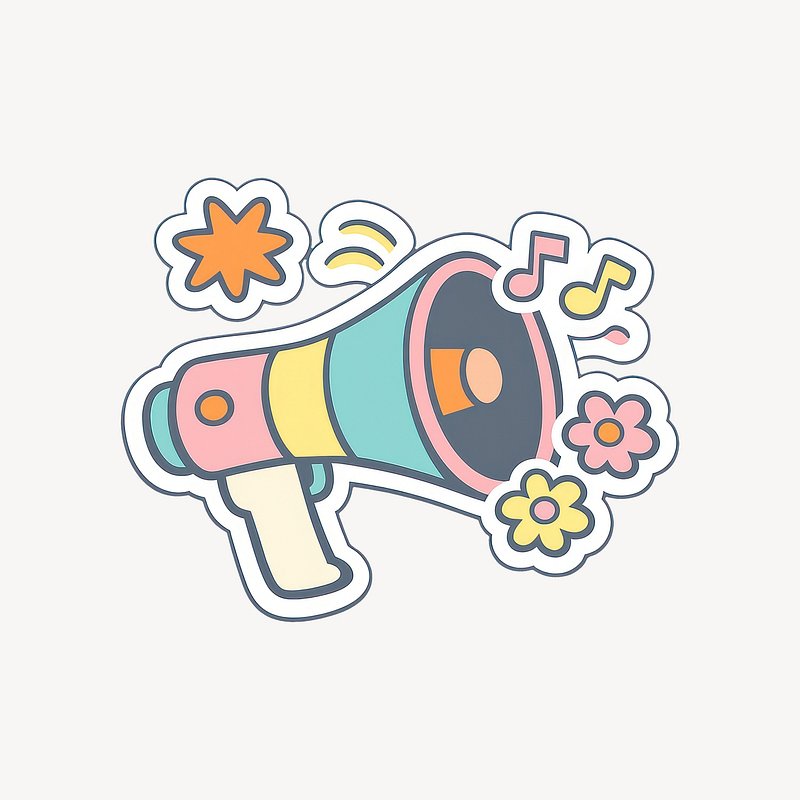 Colorful megaphone with flowers https://www.rawpixel.com/image/25372247/colorful-megaphone-with-flowersView license
