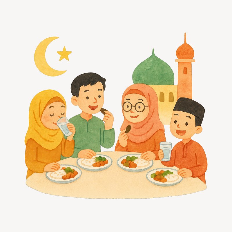 Muslim family having meal doodle collage element vector https://www.rawpixel.com/image/11899833/vector-ramadan-person-artView license