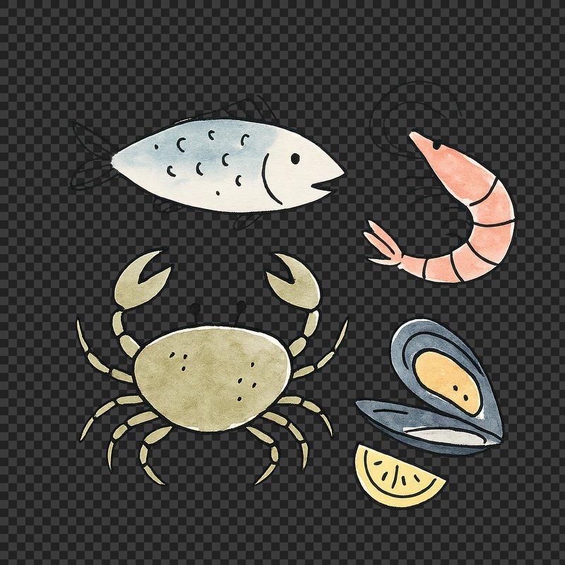 PNG Hand-drawn seafood illustration https://www.rawpixel.com/image/23673950/png-hand-drawn-seafood-illustrationView license