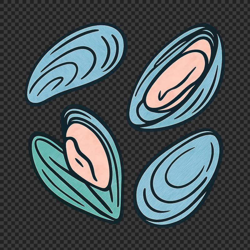 PNG Colorful mussels vintage illustration. https://www.rawpixel.com/image/24515155/png-colorful-mussels-vintage-illustrationView license