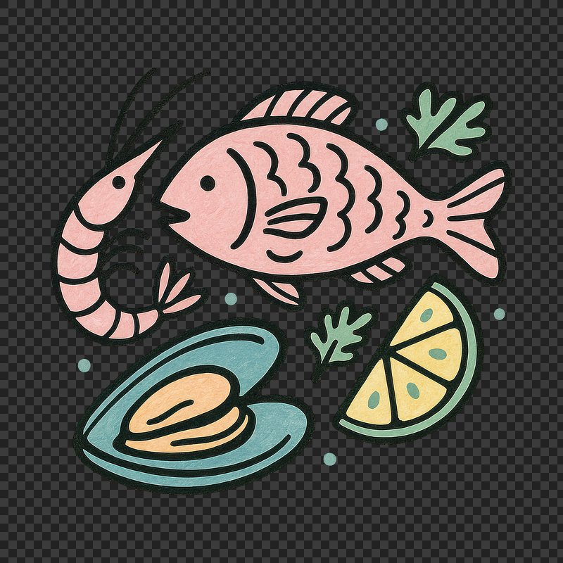 PNG Seafood illustration with vibrant colors. https://www.rawpixel.com/image/23764764/png-seafood-illustration-with-vibrant-colorsView license