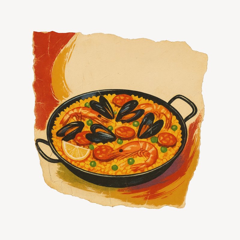 Traditional Spanish seafood paella illustration. https://www.rawpixel.com/image/24567415/traditional-spanish-seafood-paella-illustrationView license