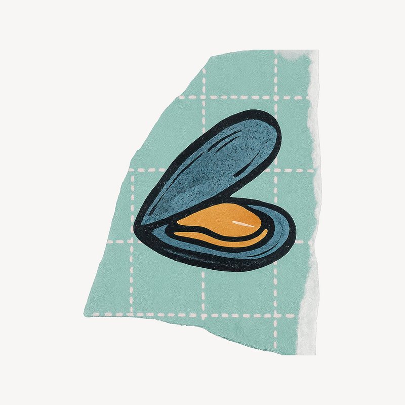 Collage-style clam illustration art. https://www.rawpixel.com/image/24493127/collage-style-clam-illustration-artView license