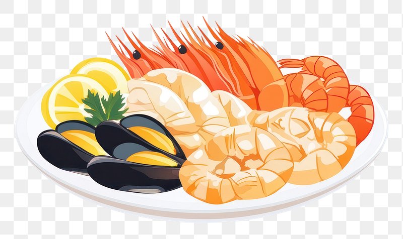 PNG Seafood in a plate seafood illustration platter. https://www.rawpixel.com/image/16891374/png-seafood-plate-seafood-illustration-platterView license