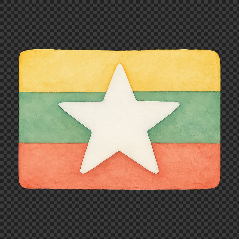 PNG Watercolor Myanmar flag illustration. https://www.rawpixel.com/image/18907145/png-watercolor-myanmar-flag-illustrationView license
