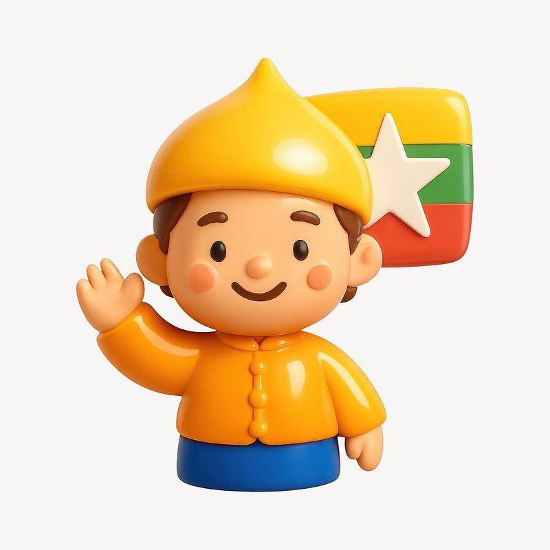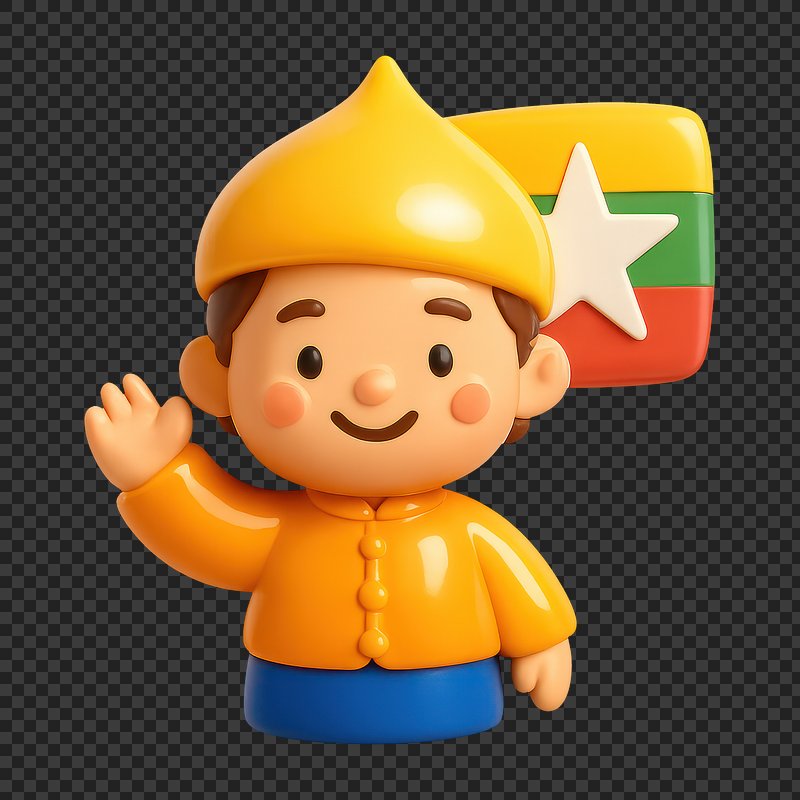 PNG Cartoon character holding Myanmar flag. https://www.rawpixel.com/image/20331789/png-cartoon-character-holding-myanmar-flagView license