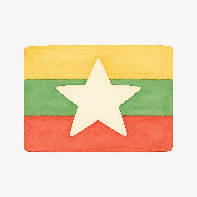 Colorful Myanmar flag illustration. https://www.rawpixel.com/image/19421636/colorful-myanmar-flag-illustrationView license