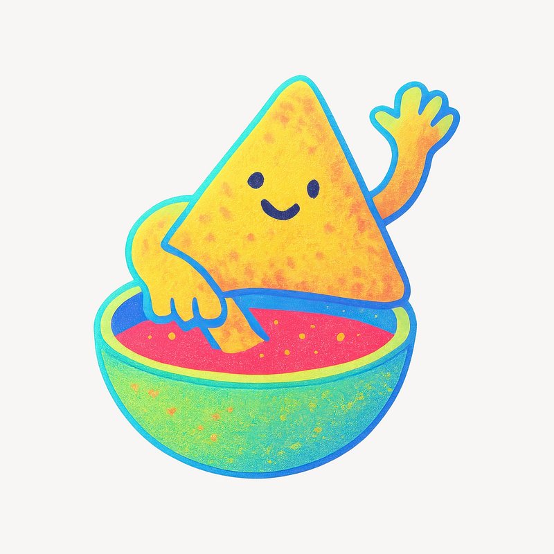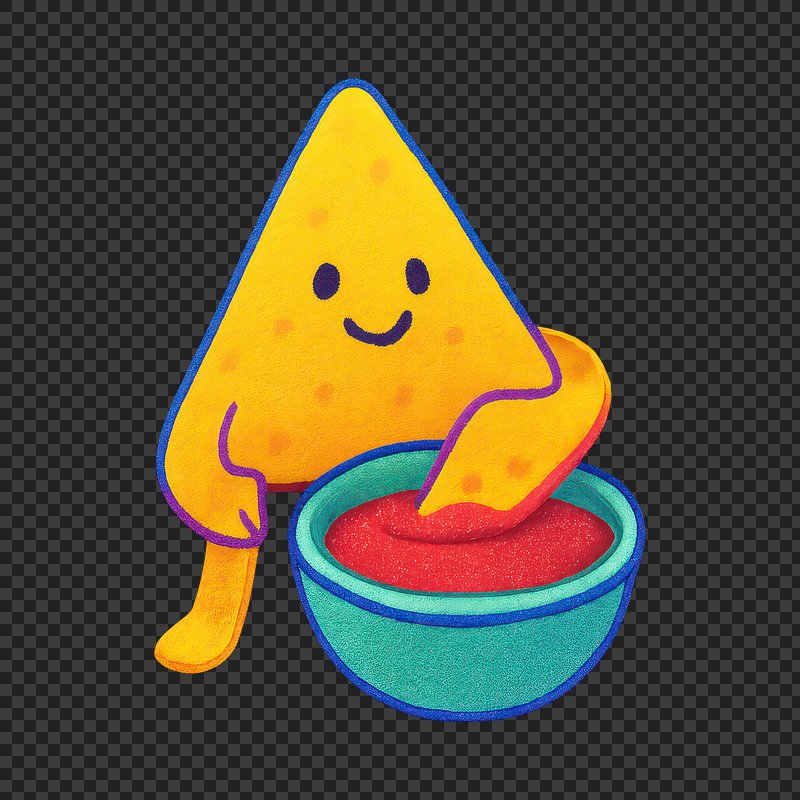 Smiling nacho dipping salsa bowl https://www.rawpixel.com/image/21865813/smiling-nacho-dipping-salsa-bowlView license