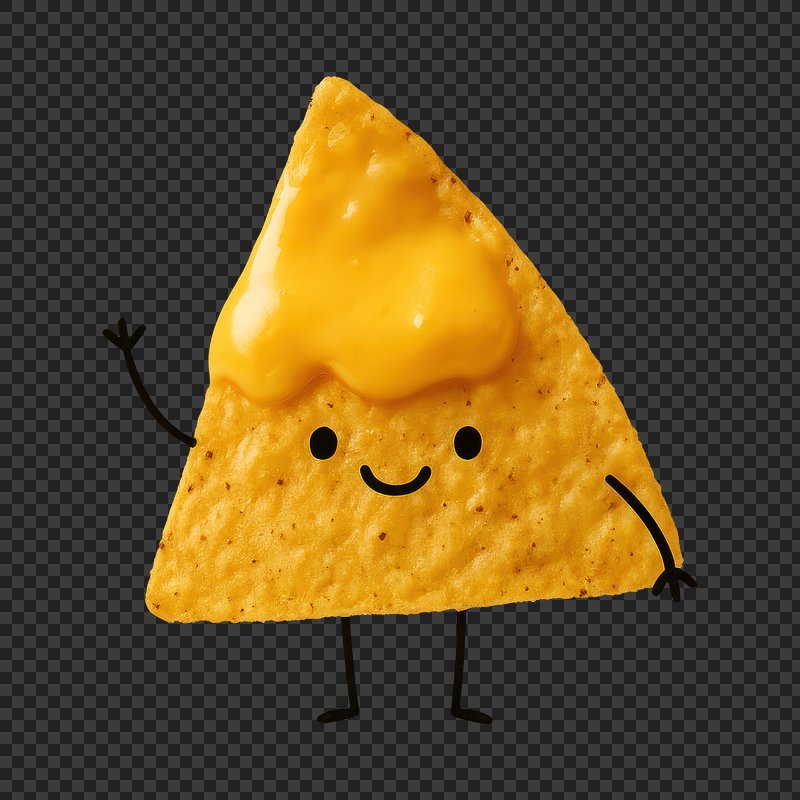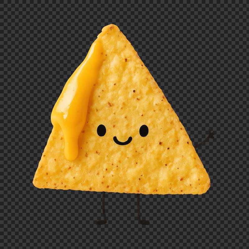 PNG Cheerful nacho with cheese. https://www.rawpixel.com/image/20632808/png-cheerful-nacho-with-cheeseView license