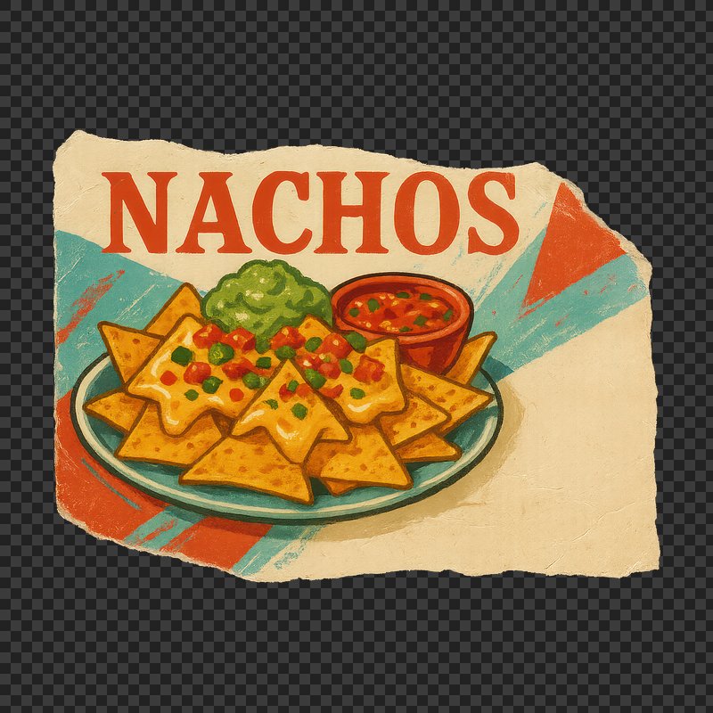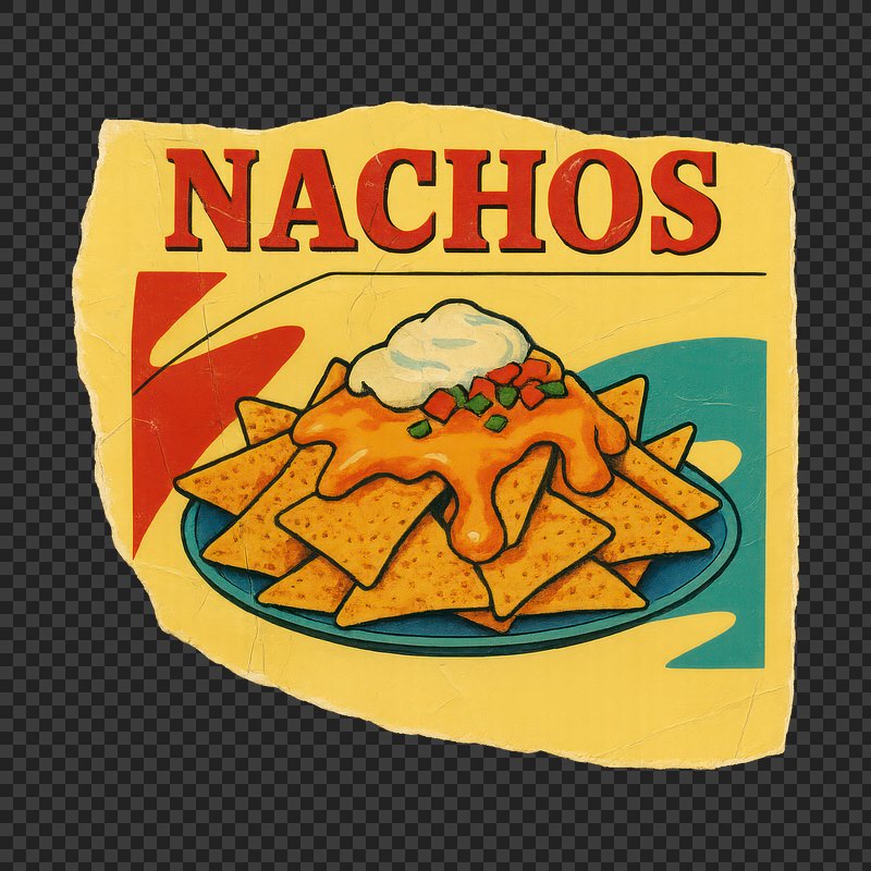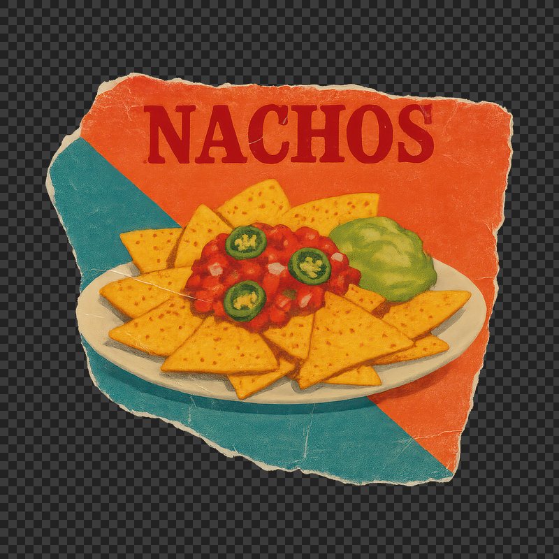 PNG Retro nachos illustration design. https://www.rawpixel.com/image/23256839/png-retro-nachos-illustration-designView license
