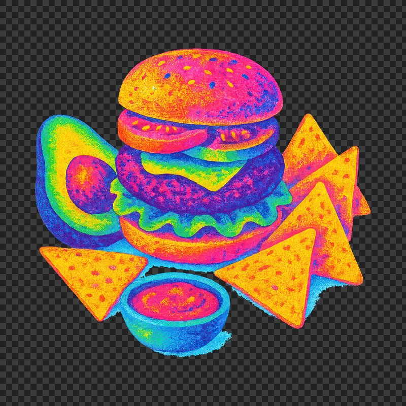 PNG Vibrant burger with nachos illustration. https://www.rawpixel.com/image/22332824/png-vibrant-burger-with-nachos-illustrationView license
