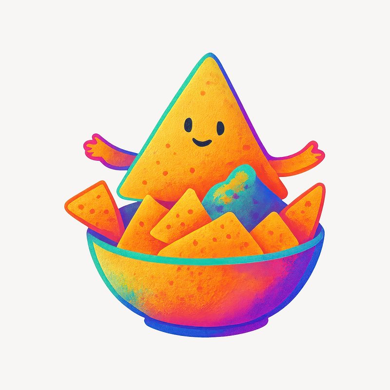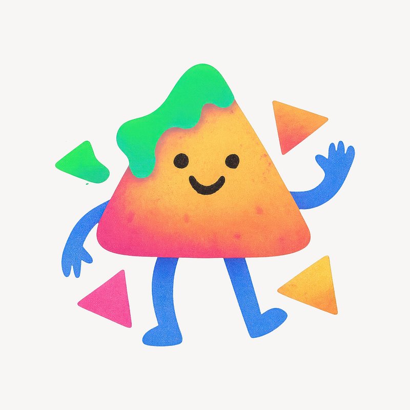 Colorful cheerful nacho character https://www.rawpixel.com/image/21863480/colorful-cheerful-nacho-characterView license