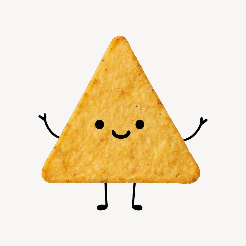 Smiling nacho chip character illustration. https://www.rawpixel.com/image/21862996/smiling-nacho-chip-character-illustrationView license